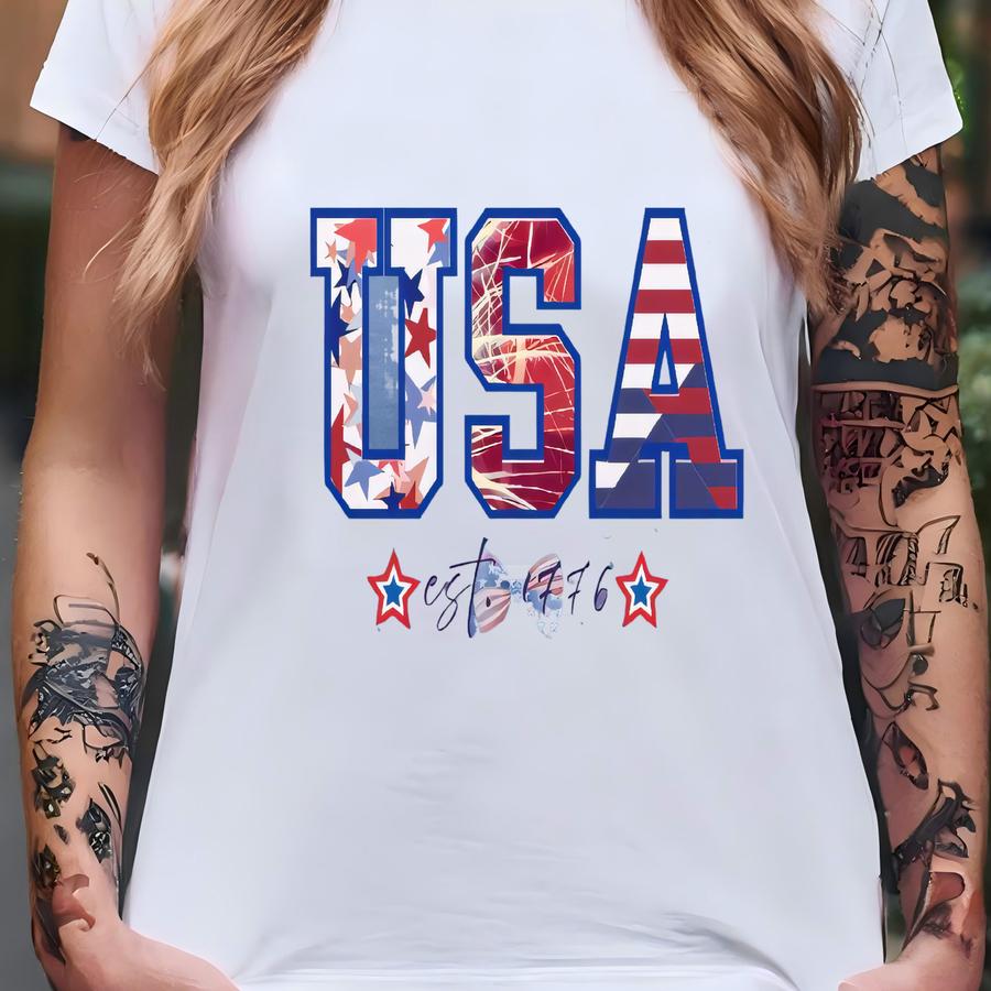 Usa 1776 Shirt 4th Of July Outfit Women 4th Of July Family Shirts Red White Royal Blue Shirt 1776 We The People Patriotic Bow Shirt Coquette T-shirt