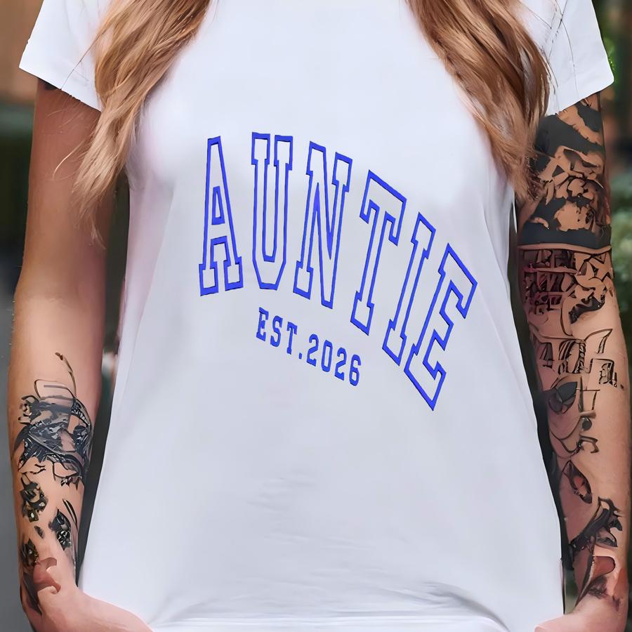 Auntie Sweatshirt With Name On Sve, Custom Minimalist Auntie Aunt Shirt, New Aunt Hoodie Gift For Cool Aunt, Gifts For Aunt T-shirt