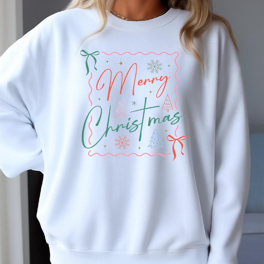 Merry Christmas Cute Bows Stars Glitter Tshirt Holiday Shirt Christmas Shirt Sweatshirt