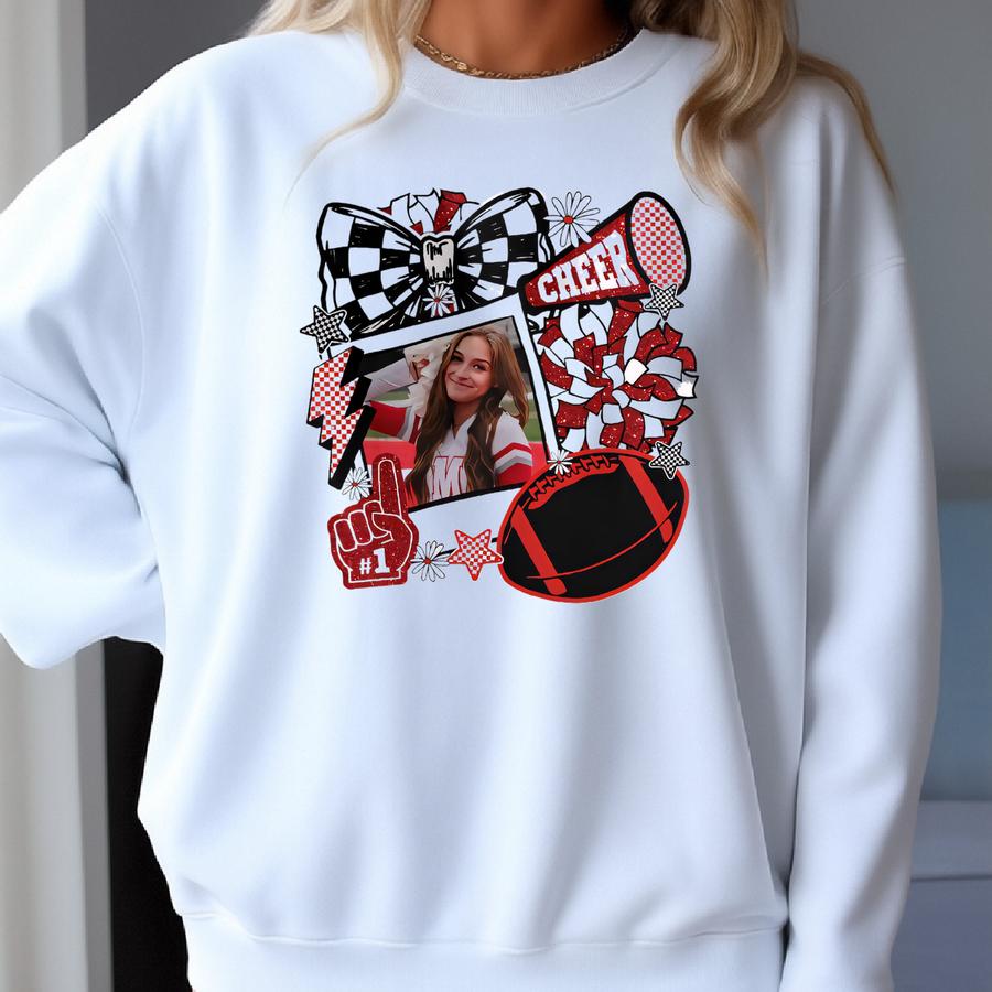 Cheer Photo Shirt Cheer Mom Custom Game Day Tee Gift For Mom High School Cheerleading Team Shirt Cheerleader Tshirt Sweatshirt