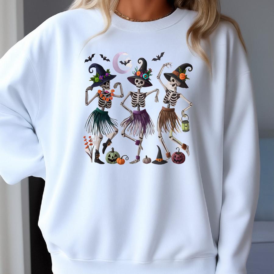 Dancing Skeleton Witches T-shirt: Spooky Halloween Graphic Tee Sweatshirt
