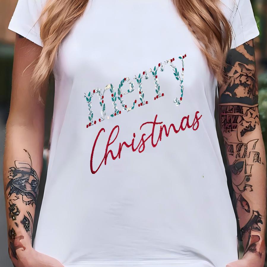 Floral Merry Christmas Crewneck Sweatshirt Merry Sweatshirt, Holiday Apparel Cute Christmas Sweater For Womens Gift T-shirt