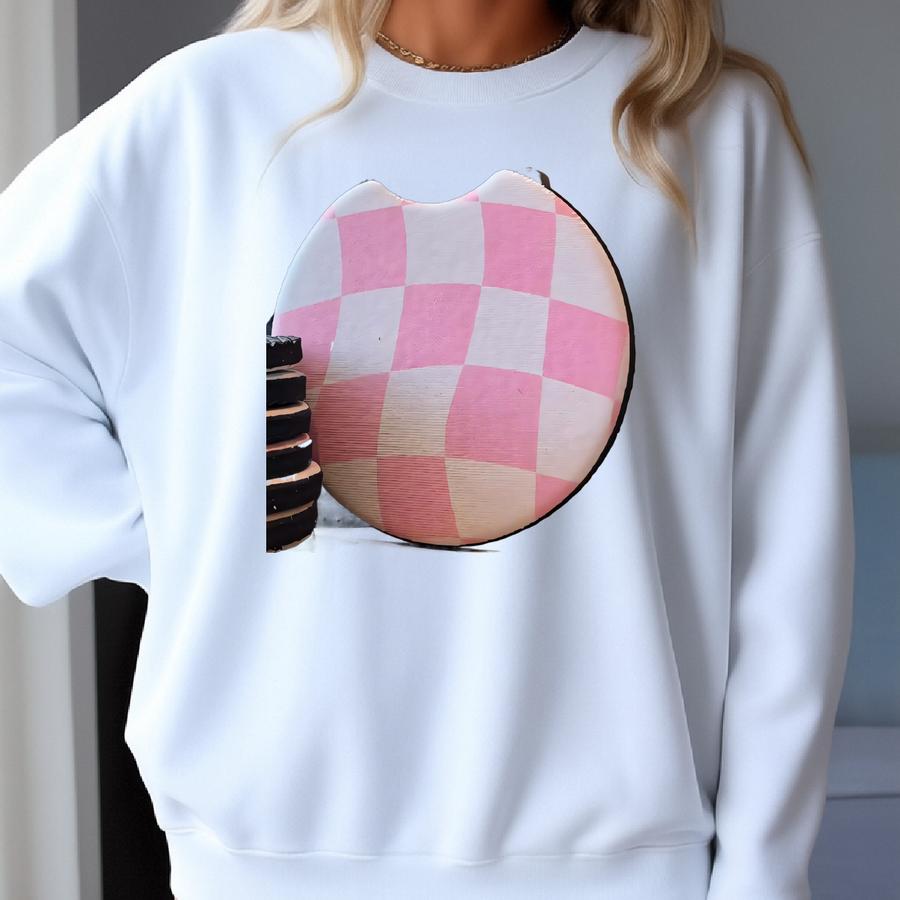 The Pink Checks Car Ers | Set Of Two, Cup Holder Ers, Car Gift, Birthday Gift For Women, Car Accessories, Sweet 16 Gift, Checkered Sweatshirt