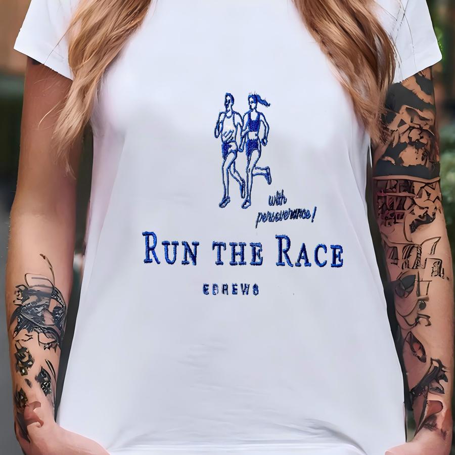Run The Race | Vintage Christian Sweatshirt , Bible Verse Crewneck, Inspirational Religious Sweater Gift, Retro Sport Pullover T-shirt