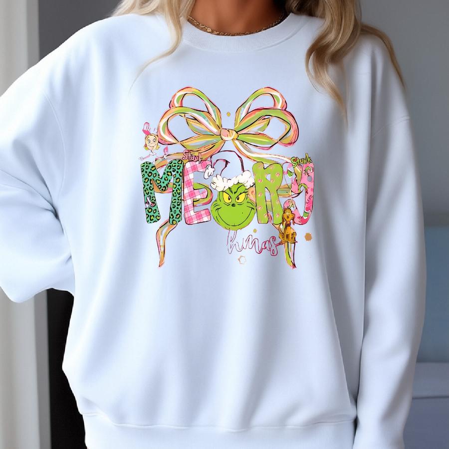 Kids Pink Merry Mas Bow T-shirt, Mas Shirt, Christmas Funny Shirt, Christmas Gift, Mas Sweatshirt Sweatshirt