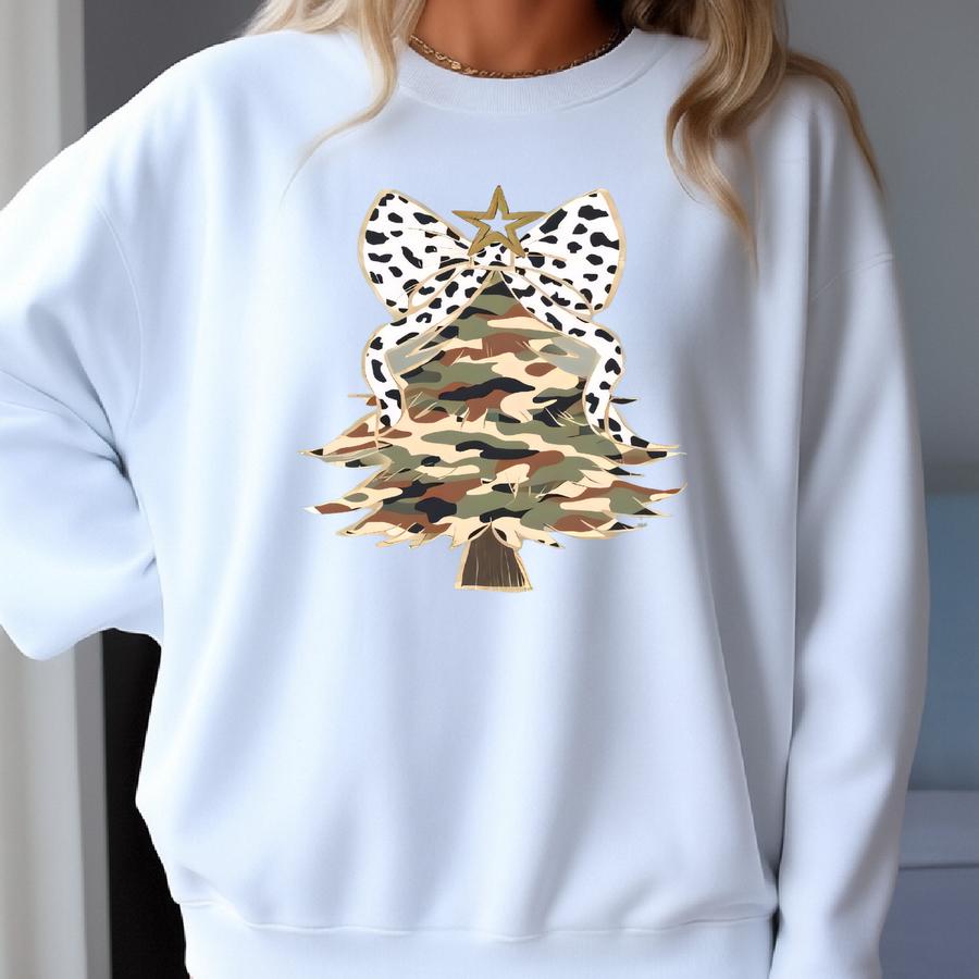Christmas Tree Camo Bow Shirt Christmas Sweatshirt For Women Christmas Tree Tshirt, Christmas Coquette Christmas Shirt, Christmas Sweatshirt Sweatshirt
