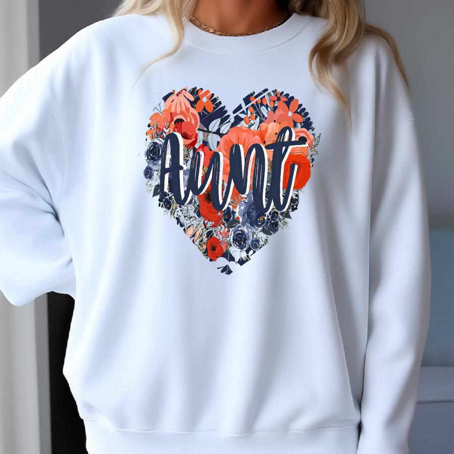 Aunt Floral Heart Tee, Cute Gift For Her, Everyday Wear, Spring Fashion, Casual Style, Birthday Gift Sweatshirt