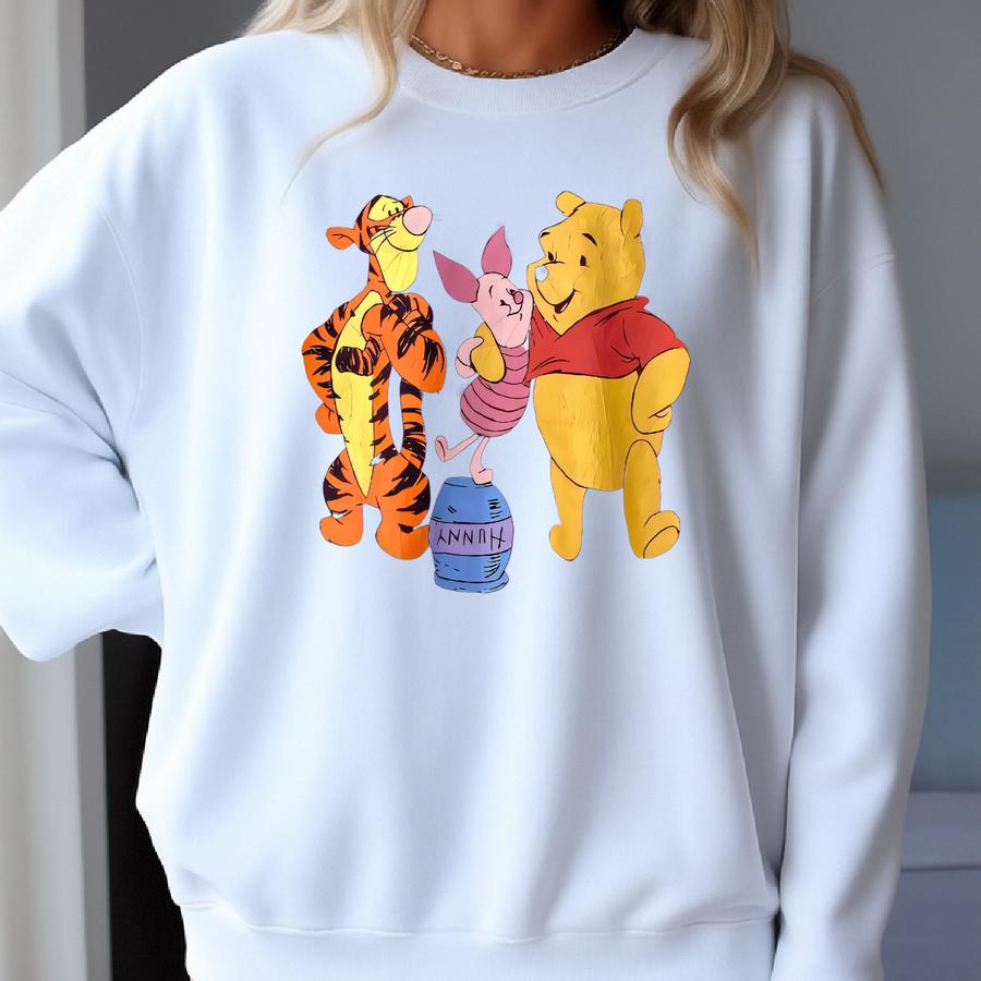 Vintage 90s Sweatshirt Crewneck Pullover Kanga Eeyore Piglet Tigger Print Logo Pink Large Sweatshirt