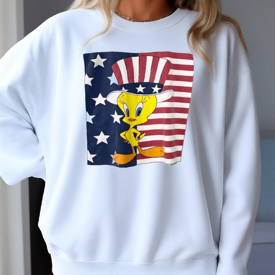 Vintage 90s Tweety T-shirt Looney Tunes Bugs Bunny Sylvester Daffy Duck Tasmanian Print Logo White Sweatshirt