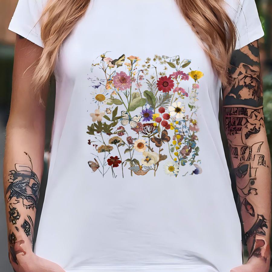 Vintage Pressed Flowers Sweatshirt, ® Boho Cottagecore Crewneck, Garden Botanical Shirt, Floral Pullover, Wildflowers Sweater T-shirt