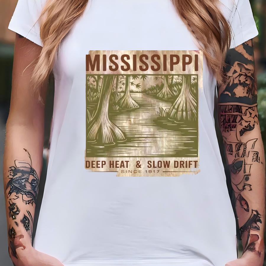 Mississippi Bayou Swamp Bleached Flannel Shirt Rustic Southern Graphic Vintage Country Style T-shirt