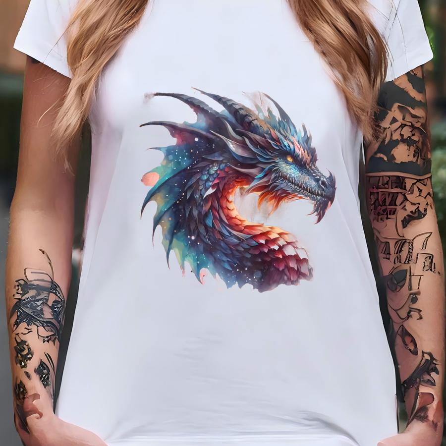 Dragon Fantasy Bleached Flannel Shirt Mythical Creature Graphic Gothic Medieval Style T-shirt