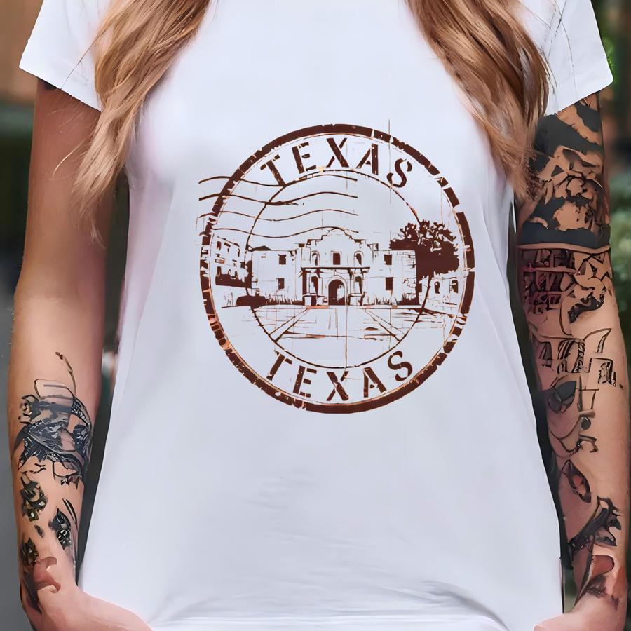 Exas Alamo Bleached Flannel Shirt Rustic Western Style Heritage Graphic Cowboy State Graphic T-shirt
