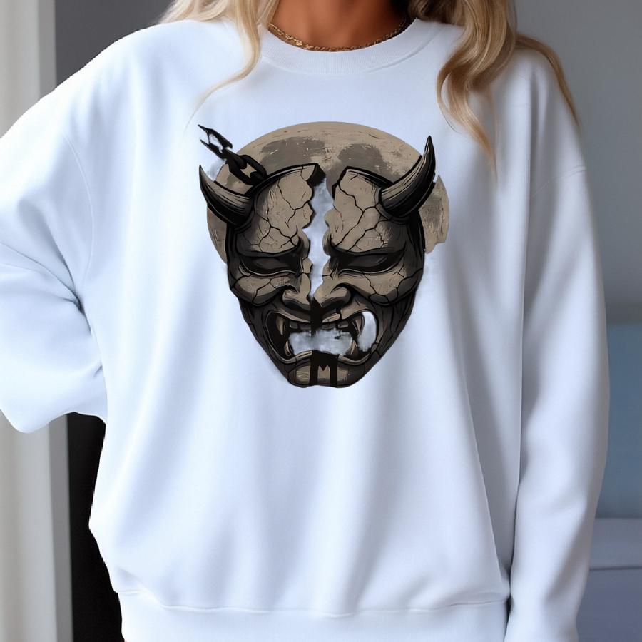 Samurai Demon Mask Hoodie – Gothic Anime Streetwear – Japanese Oni Inspired Hoodie – Vaynora Gift Sweatshirt