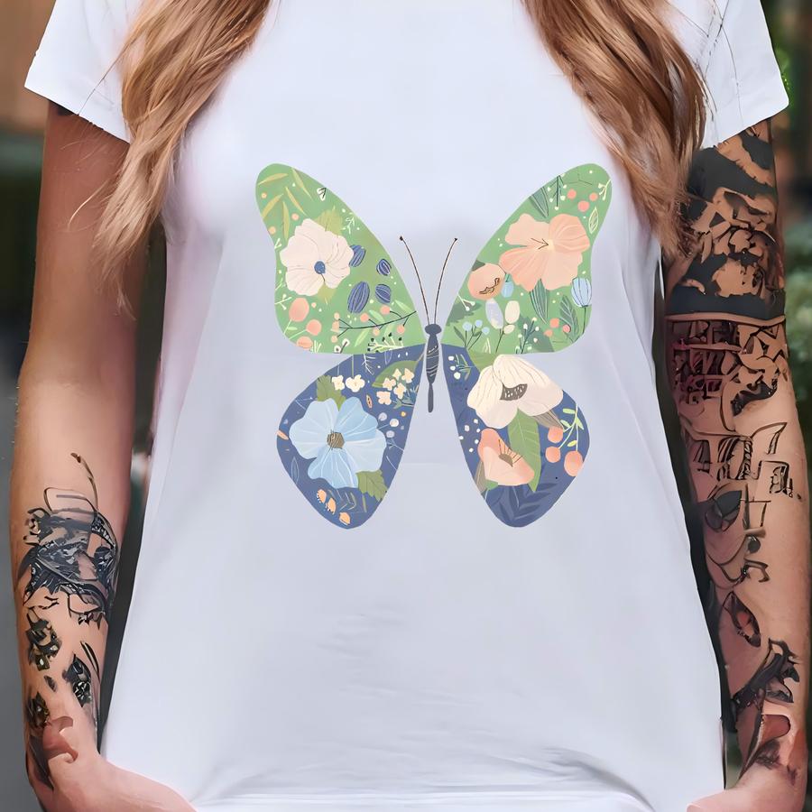 Butterfly Floral Graphic T Shirt Pastel Flower Butterfly Shirt Spring Garden Nature Tee Boho Butterfly Outfit Gift Soft Aesthetic Shirt T-shirt