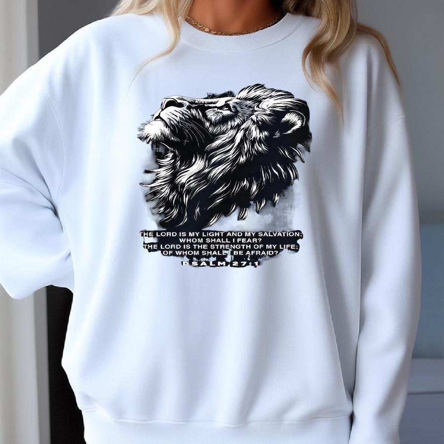 Whom Shall I Fear Christian Shirt Psalm 27:1 Bible Verse Tee, Fearless Lion T-shirt, Scripture Apparel, Religious Gift For Men And Women Sweatshirt