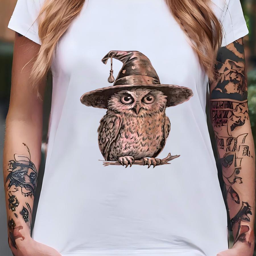 Witch Owl Bleached Flannel Shirt Halloween Spooky Plaid Top Rustic Witchy Fall T-shirt