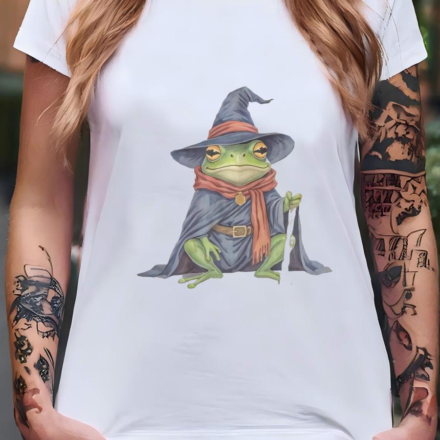 Wizard Frog Bleached Flannel Shirt Fantasy Witchy Plaid Top Halloween Magic Rustic Style T-shirt