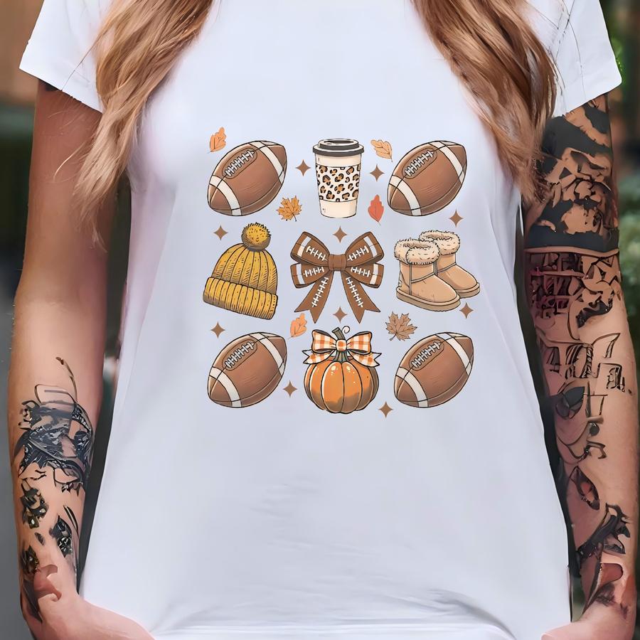 Fall Football Coffee Pumpkin Shirt Cozy Autumn Outfit Graphic Crewneck Sweatshirt Leopard Cup Ugg Boots Beanie Bow Leaves Tee T-shirt