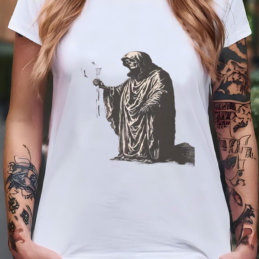 Grim Reaper Graphic Shirt: Gothic Skeleton Scythe, Dark Horror Art T-shirt