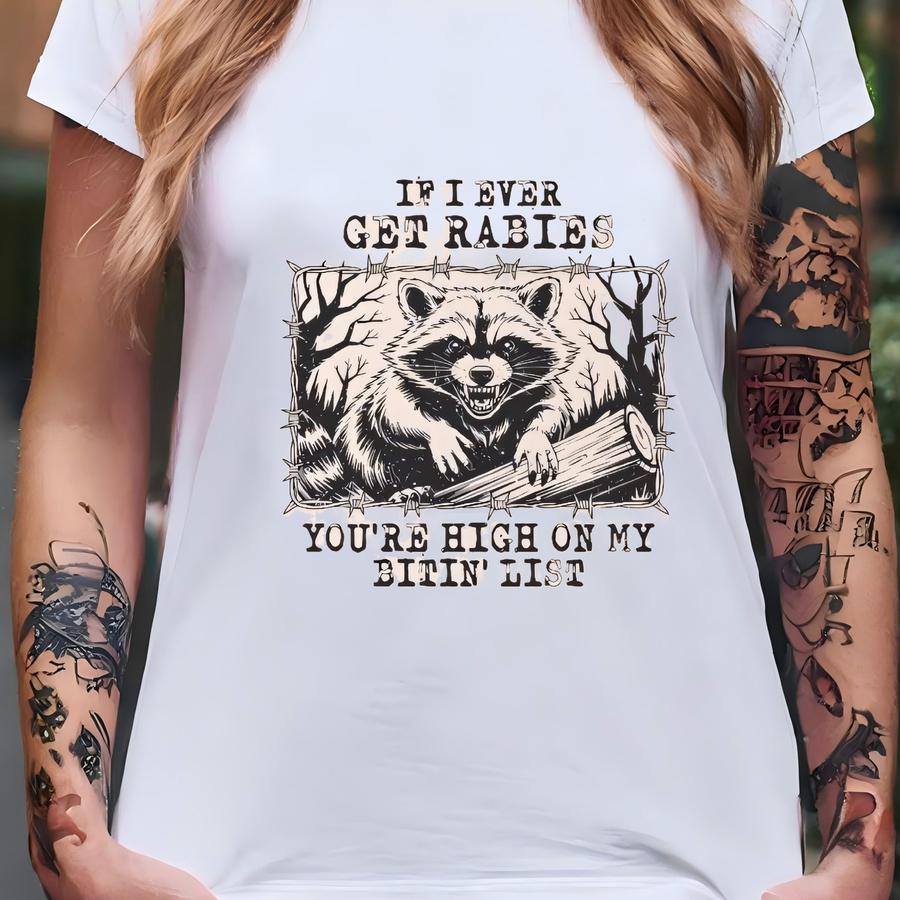 Funny Raccoon Graphic Shirt If I Ever Get Rabies Youre High On My Bitin List Animal Humor Tee Cute Woodland Creature Gift T-shirt