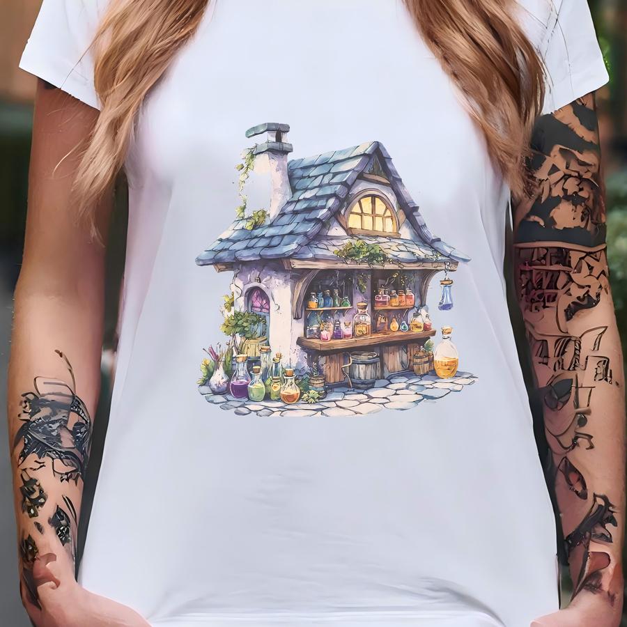 Cottagecore Alchemist Potions Shop Graphic T Shirt Magical Apothecary House Aesthetic Cute Fantasy Tee Witchy Shirt Fairycore Gift T-shirt