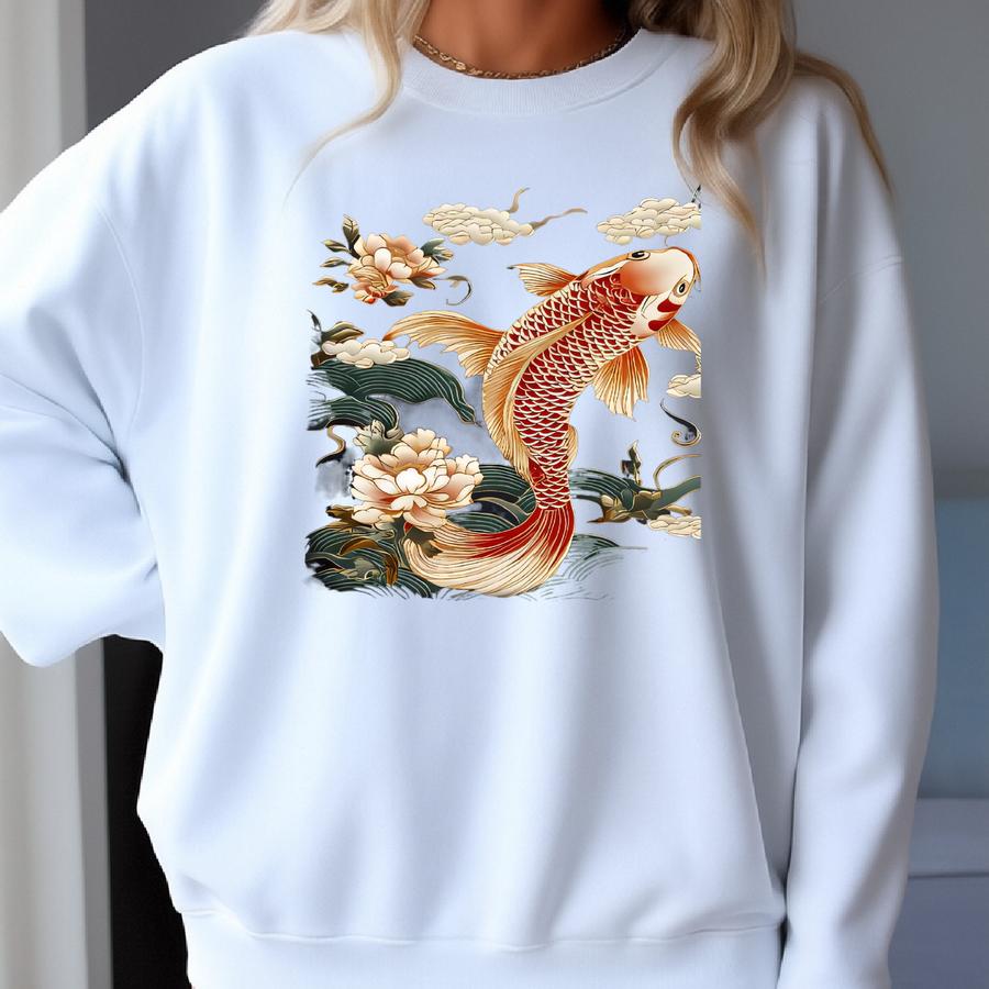 Cozy Vintage Japanese Koi Fish Shirt, Nautical Animal Asian Art Nouveau Japan Shirt, Pond Top Urban Unisex Spring Shirt, Tokyo Style Shirt Sweatshirt