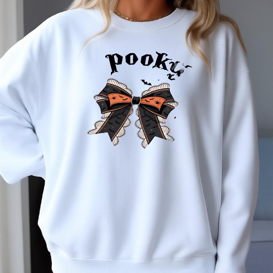 Spooky Mama Hoodie: Ghost Bow Halloween Mom Sweatshirt Sweatshirt