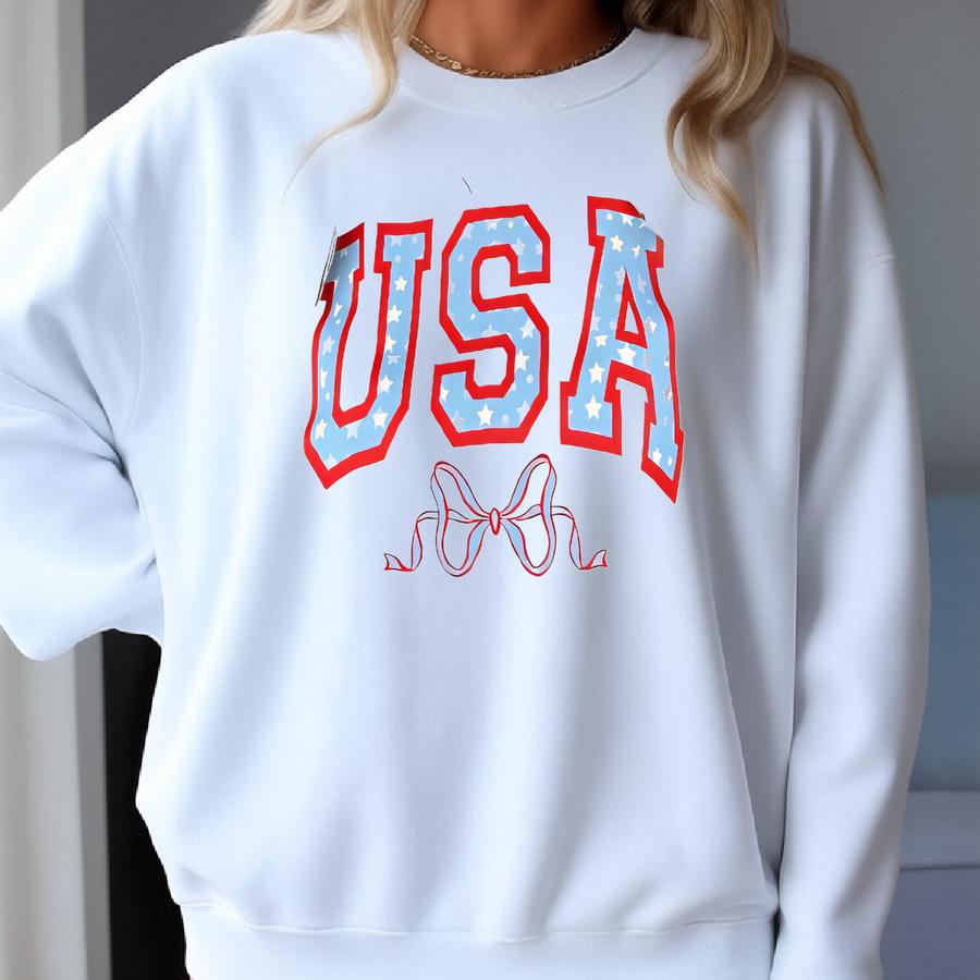 Usa Coquette T-shirt, 4th Of July Girly Shirt, Summer Themed Shirt, Coquette Bow Themed America T-shirt, Sweatshirt, Gildan Sweatshirt