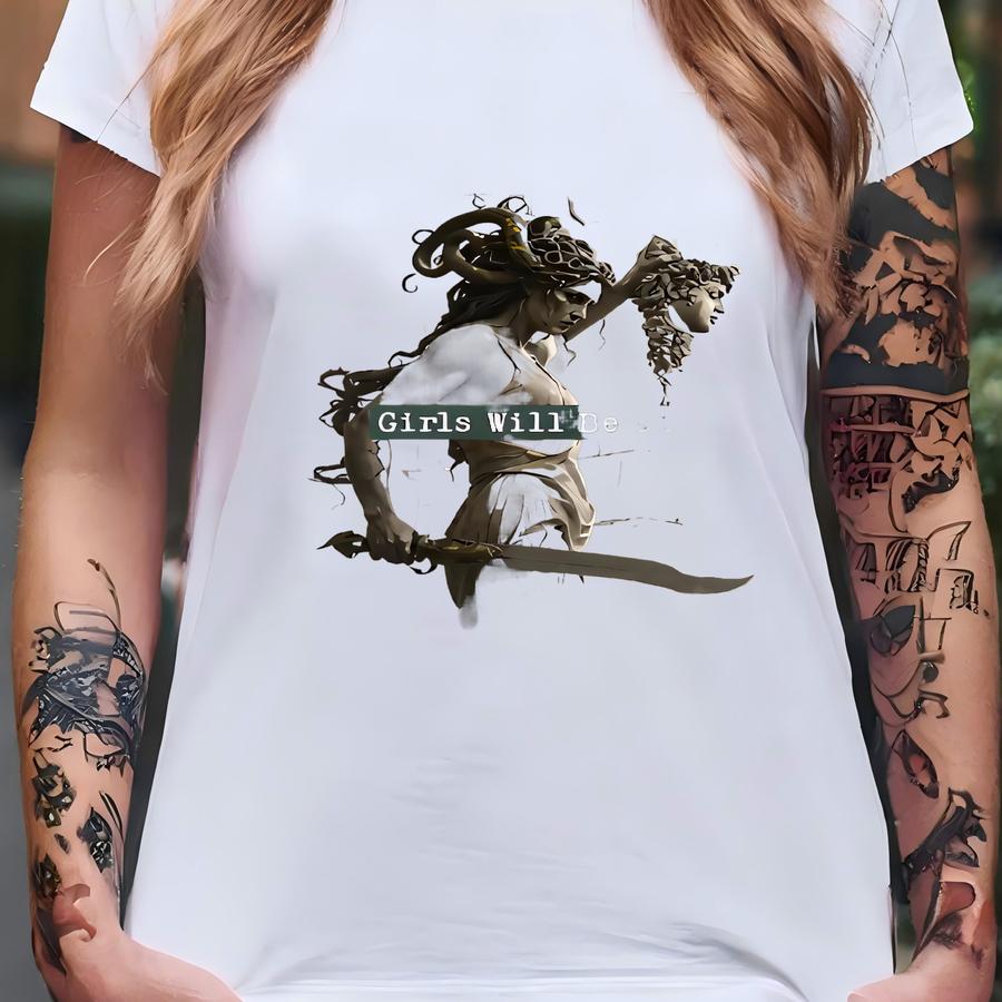 Girls Will Be Girls Shirt, Vintage Medusa Holding Head Shirt, Greek God Graphic, Feminism Shirt, Women Right's Shirt, Gift For Her T-shirt