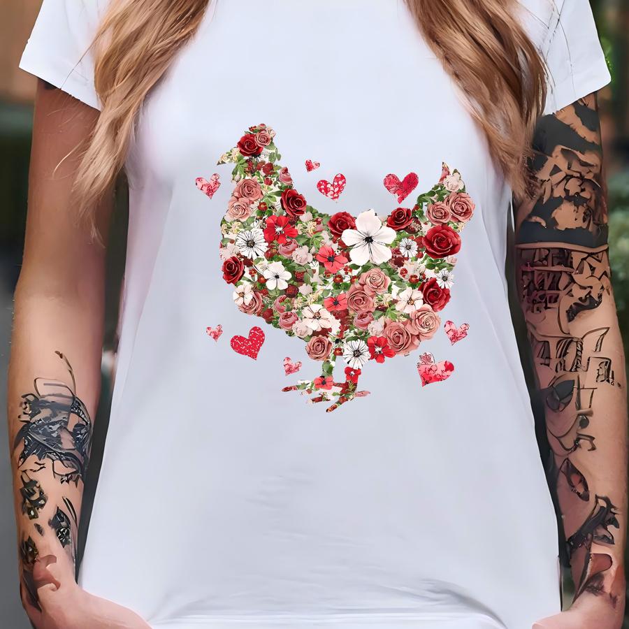 Floral Chicken Valentine Sweatshirt, Valentines Day Chicken Shirt, Cute Chicken Gift, Chicken Lover Gift, Farm Life Valentine Gift T-shirt