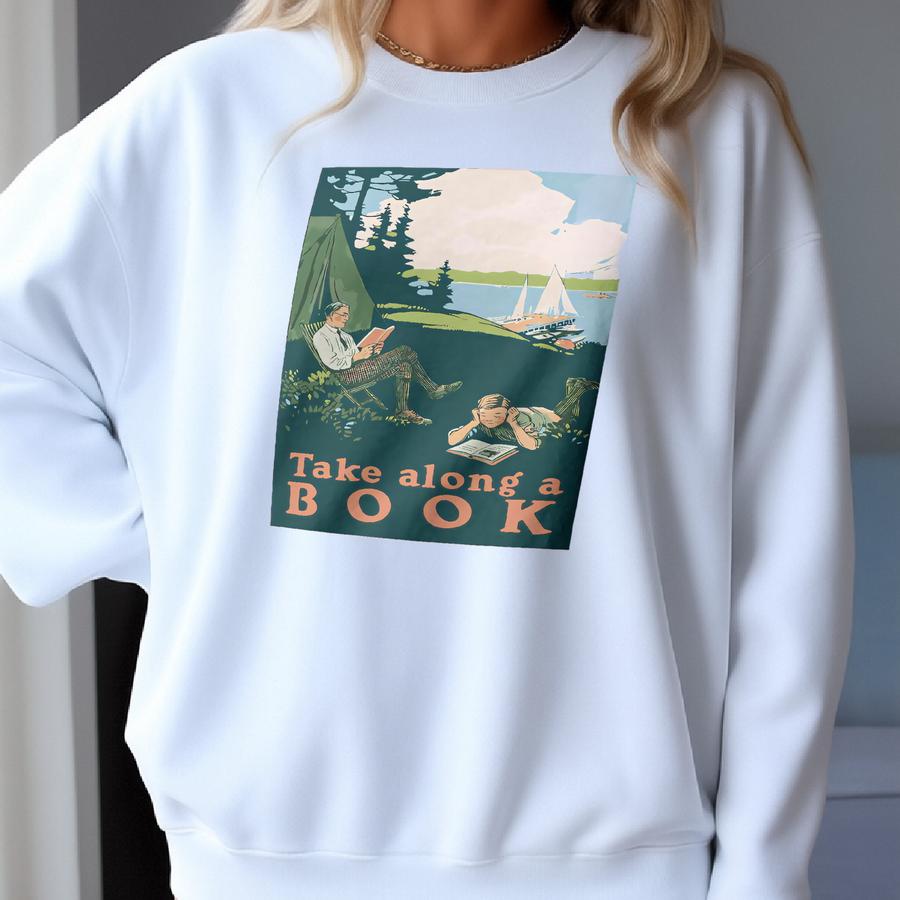 Book Lovers Vintage Shirt | Bookish Lake Camping T-shirt | Outdoor Reading Tee | Take Along A Book | Reader Gifts Sweatshirt