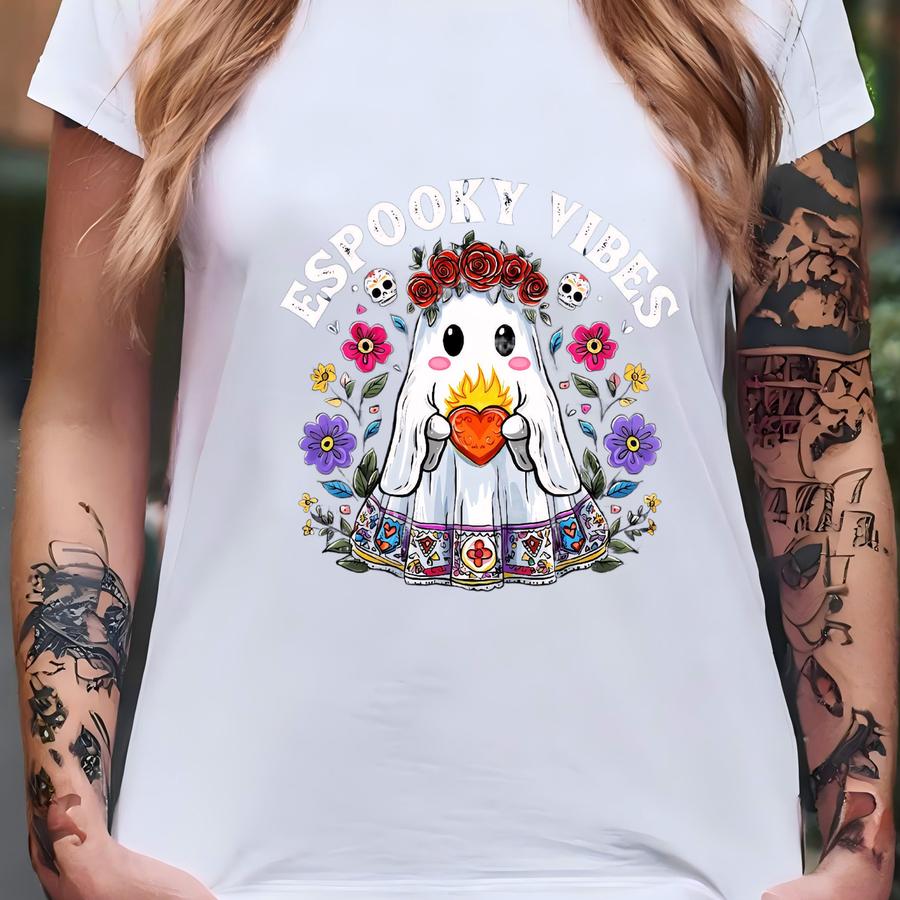 Espooky Vibes Halloween Sweatshirt, Halloween Spirit Sweater, Boo-tiful Halloween Sweat, Spooky Vibes Pullover,gift Mexican Ghost Crewneck T-shirt