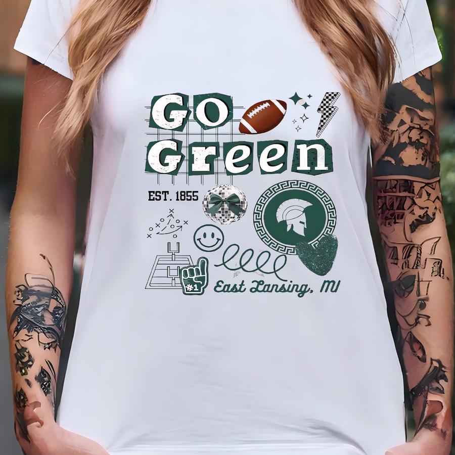 Go Green Football Tee, Spartan Retro Preppy Game Daytee, Football Tailgating Shirt, Oversized , Michigan Sports, East Lansing T-shirt