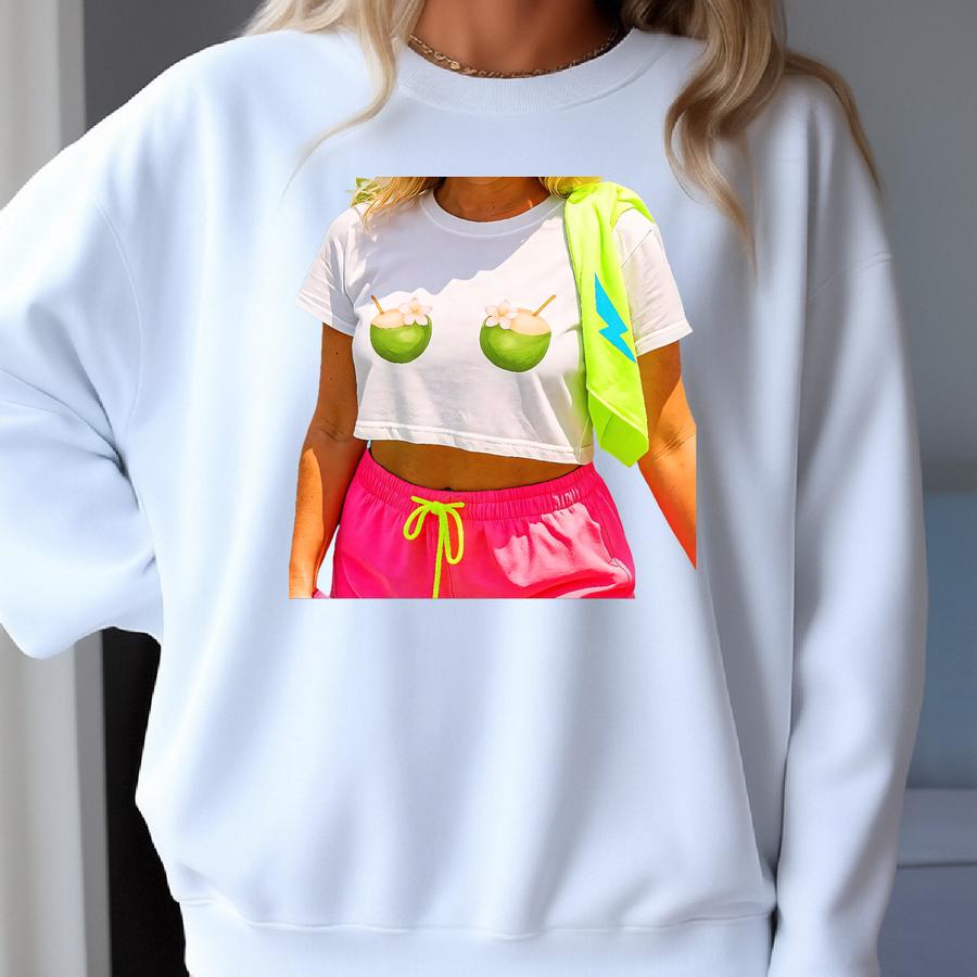 Coconut Bra Crop Top: Beach Vibes Tee - Summer Bachelorette Party Sweatshirt