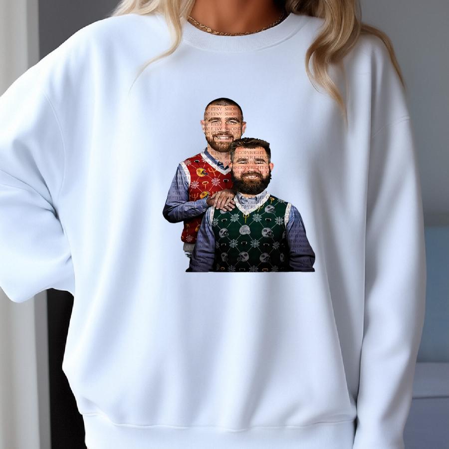 Travis Kelce Jason Kelce Kansas City Football T-shirt, Step Brothers Football Shirt, Funny Ugly Christmas Sweater Shirt, Eagles Football Tee Sweatshirt