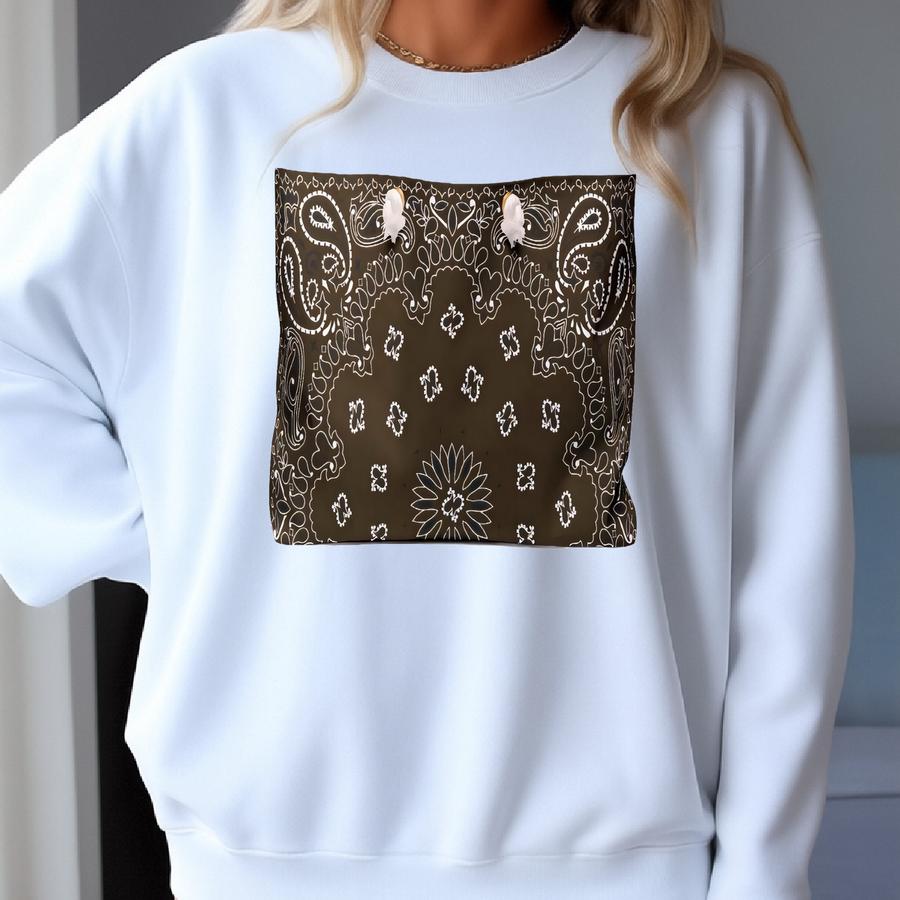 Brown Bandana Weekender, Tote, Preppy Beach Duffel, Purse, Travel Overnight Carry-on, Handbag, L Cowgirl, Western Rodeo Sweatshirt