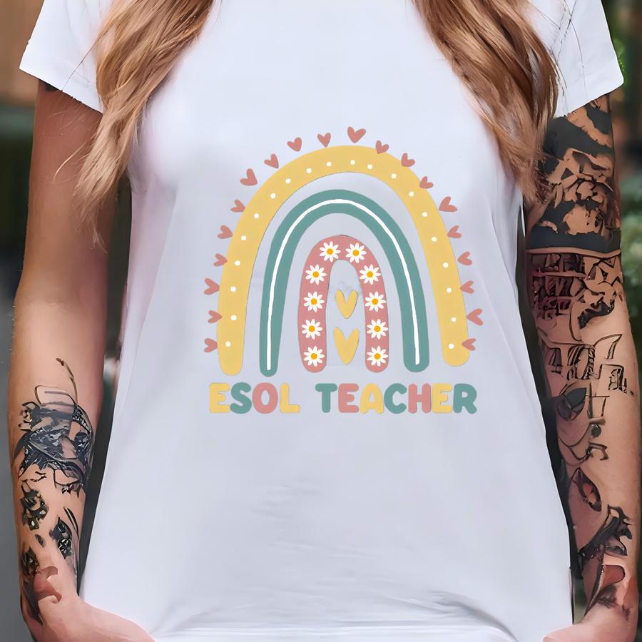Retro Rainbow Esol Teacher Sweatshirt: English Language Gift T-shirt