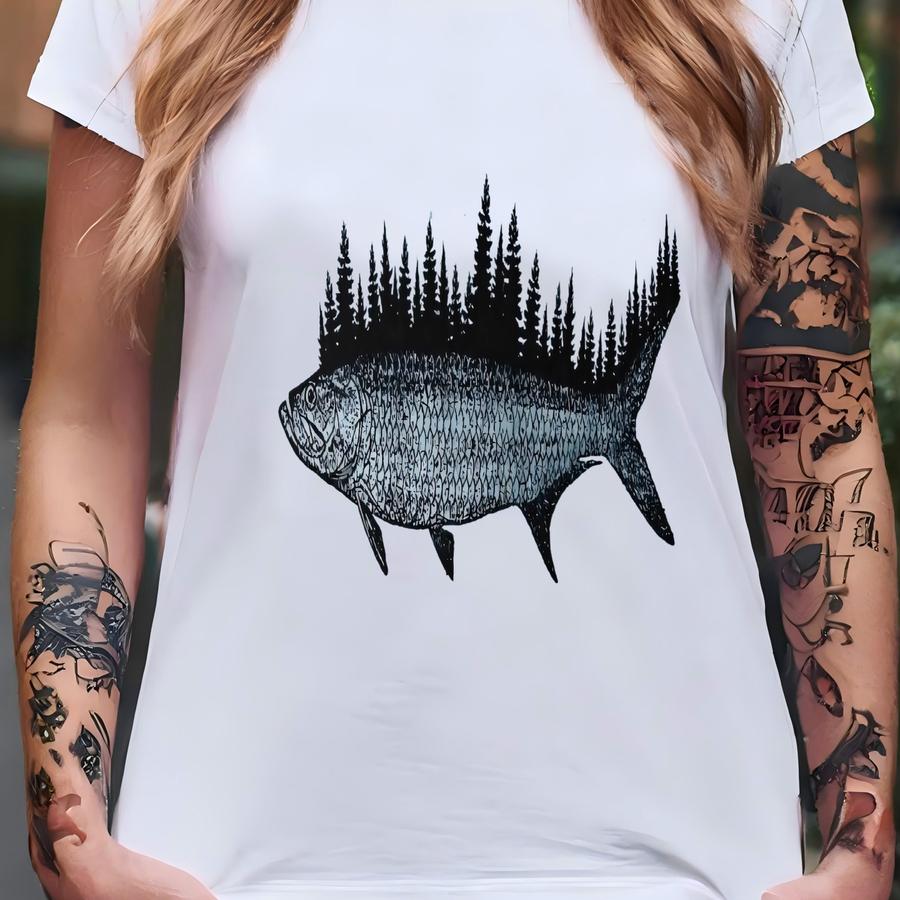 Tree Fish Cork Er Set: Abstract Nature Design T-shirt