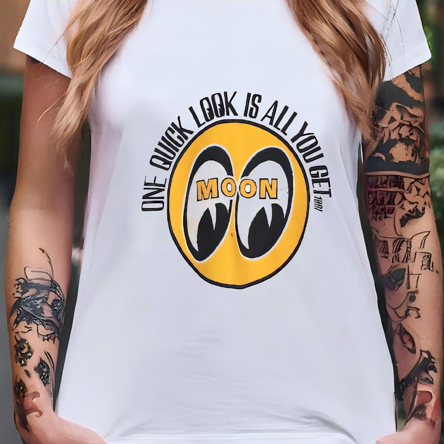 Vintage 90s Mooneyes Logo Sweatshirt Large Mooneyes One Quick Look Is All You Get Printed Jumper Mooneyes Nhra American Hot Rod Sweater L T-shirt