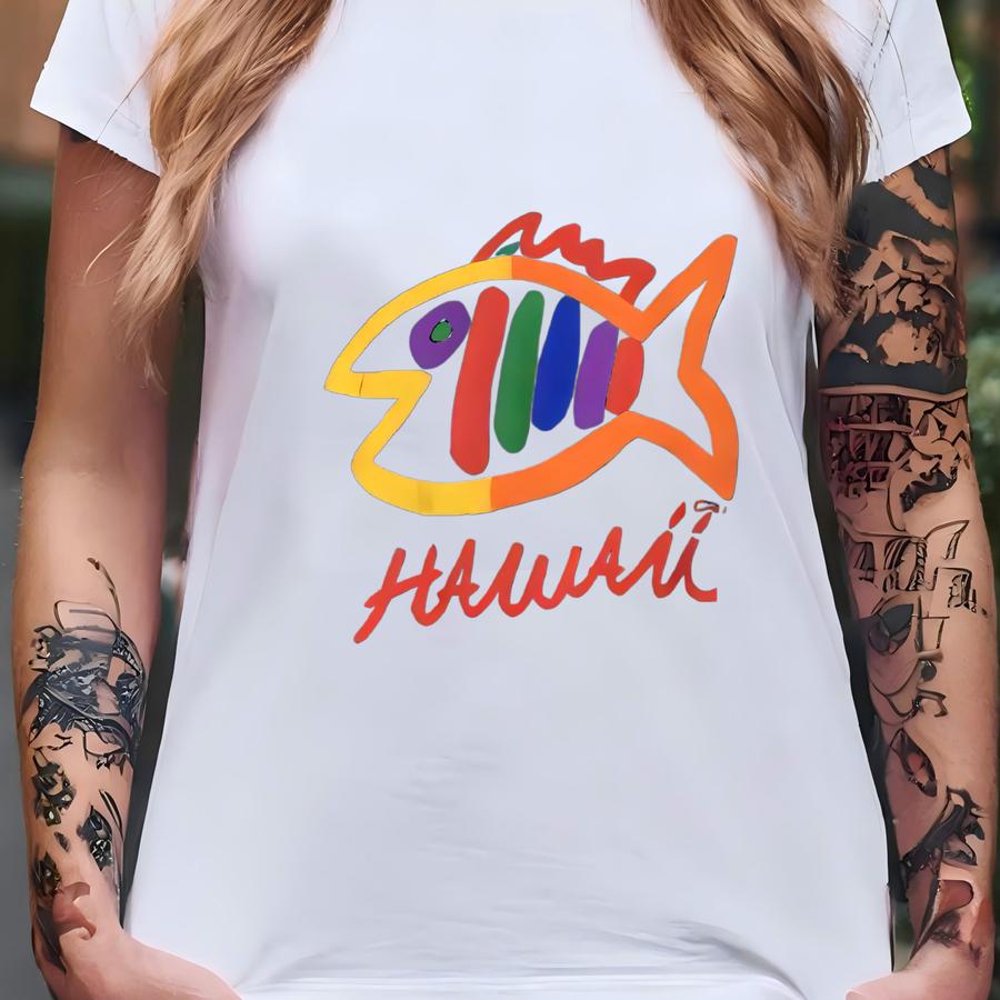 Vintage 90s Fish Hawaii Blue Sweatshirt Small Hawaiian Fish Hawaii Rainbow Pullover Kauai Fish Multicolor Art Sweater Size S T-shirt