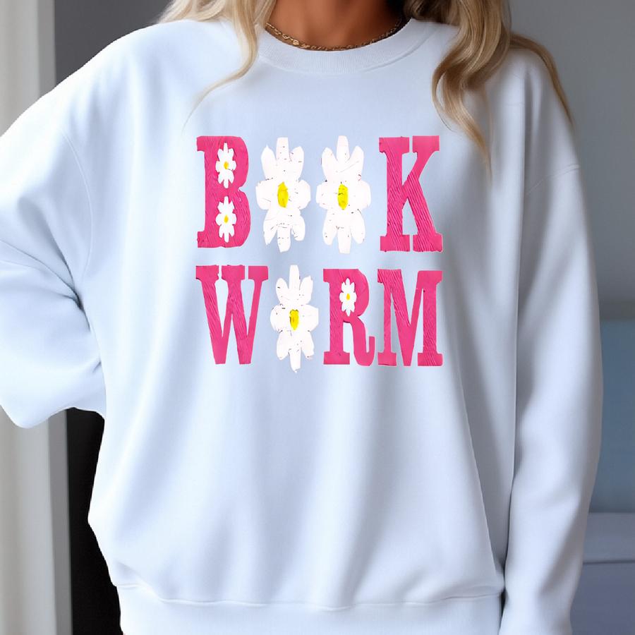 Bookworm Flower Crewneck Sweatshirt, Flowery Bookworm Y, Bookish Sweatshirt, Reading Sweater Sweatshirt