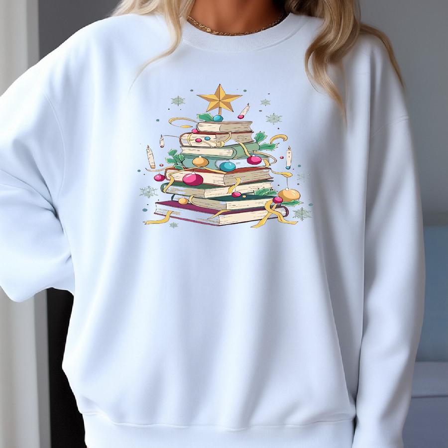 Merry Bookmas Shirt Gift For Librarian,bookworm Christmas Sweater,christmas Book Tree Sweatshirt,book Lovers Christmas Sweatshirt Sweatshirt