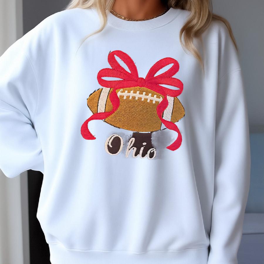 Sweatshirt- Ohio, Arkansas Or Texas, Y, Football And Red Bow, Choice Of Colors Sweatshirt