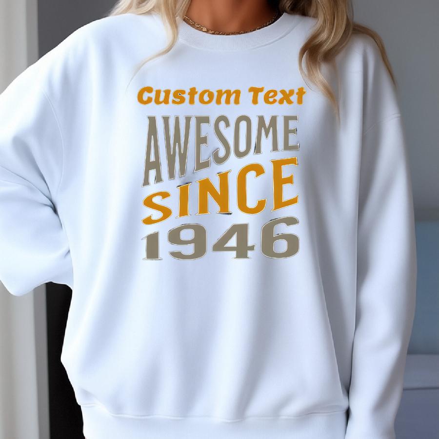 Vintage Year Awesome Since 1946 Custom Text T-shirt, Personalized Birthday Gift Retro Style Unisex Shirt For Anniversary,gift For Him Or Her Sweatshirt