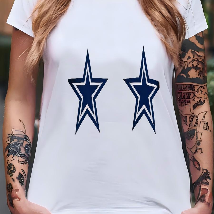 Cowboys Women's Drop Shoulder Sweatshirt - Cozy Cute Navy And White Football Fan Apparel, Stars Design T-shirt