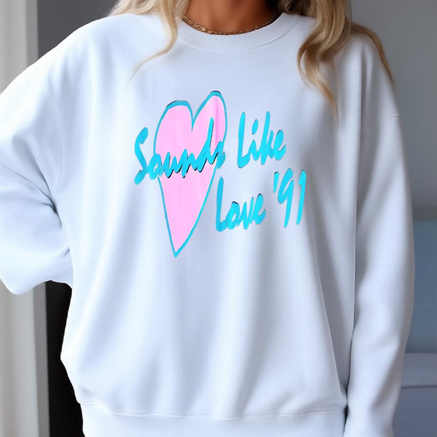 Vintage 1991 Oneita Graphic Sounds Like Love Long Sve Shirt Size Large Sweatshirt