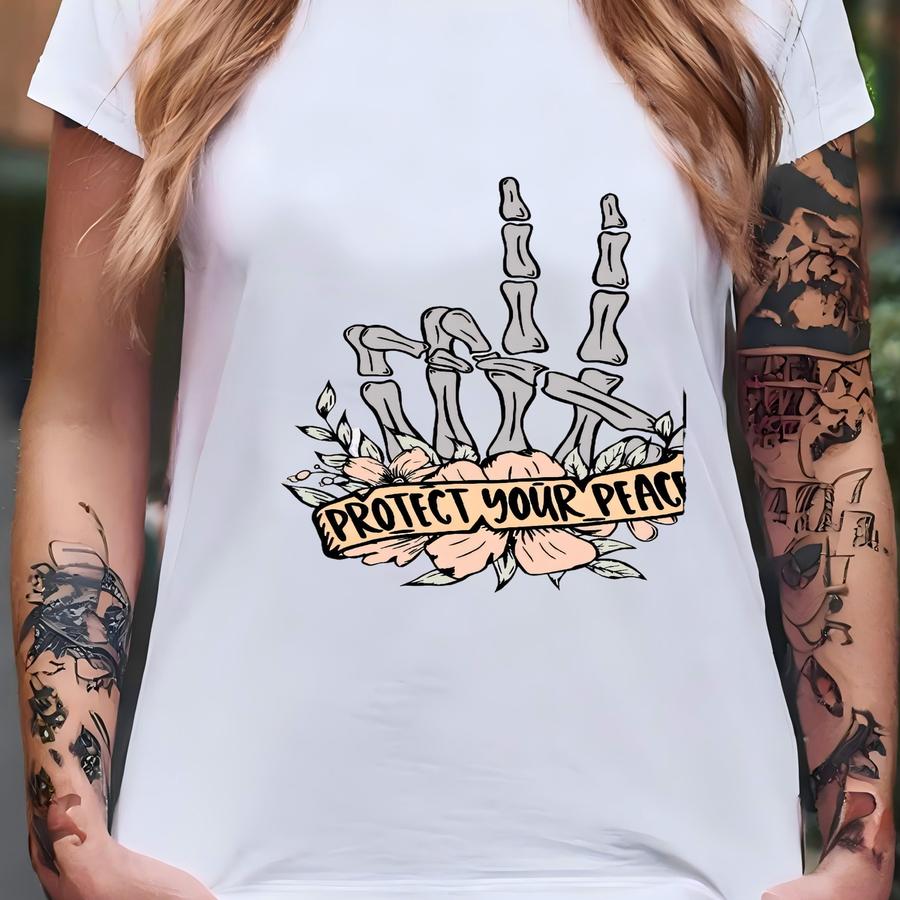 Flower Skull Sweatshirt: Protect Your Peace Skeleton Hand Pullover T-shirt