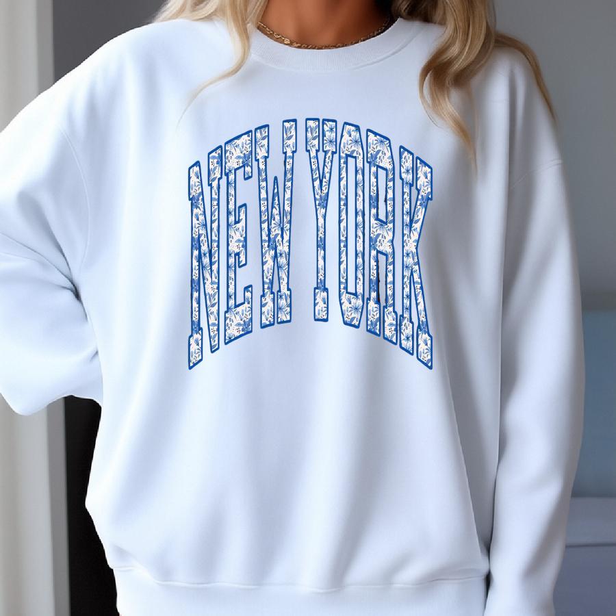 Blue Floral New York Varsity Sweatshirt: Boho Ny Mama Gift Sweatshirt