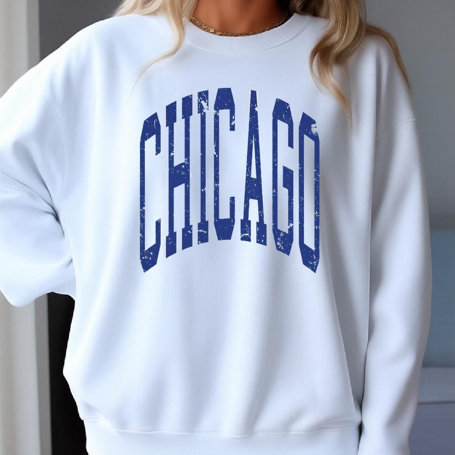 Vintage Chicago Sweatshirt Unisex Fit Blue And White Chicago Baseball Sweater Cheer Crewneck Sweatshirt